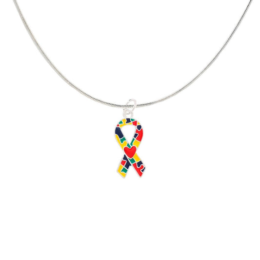 Autism Ribbon with Heart Necklaces