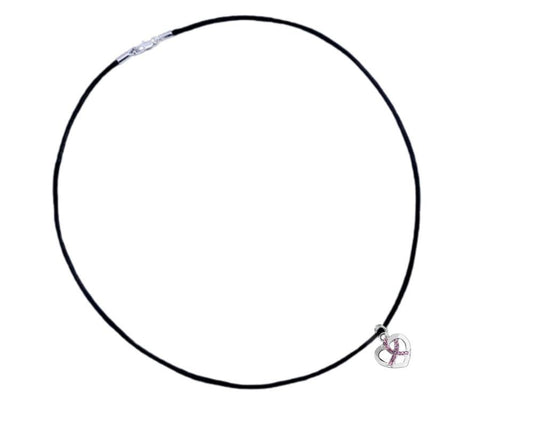 Crystal Heart Pink Ribbon Leather Cord Necklaces