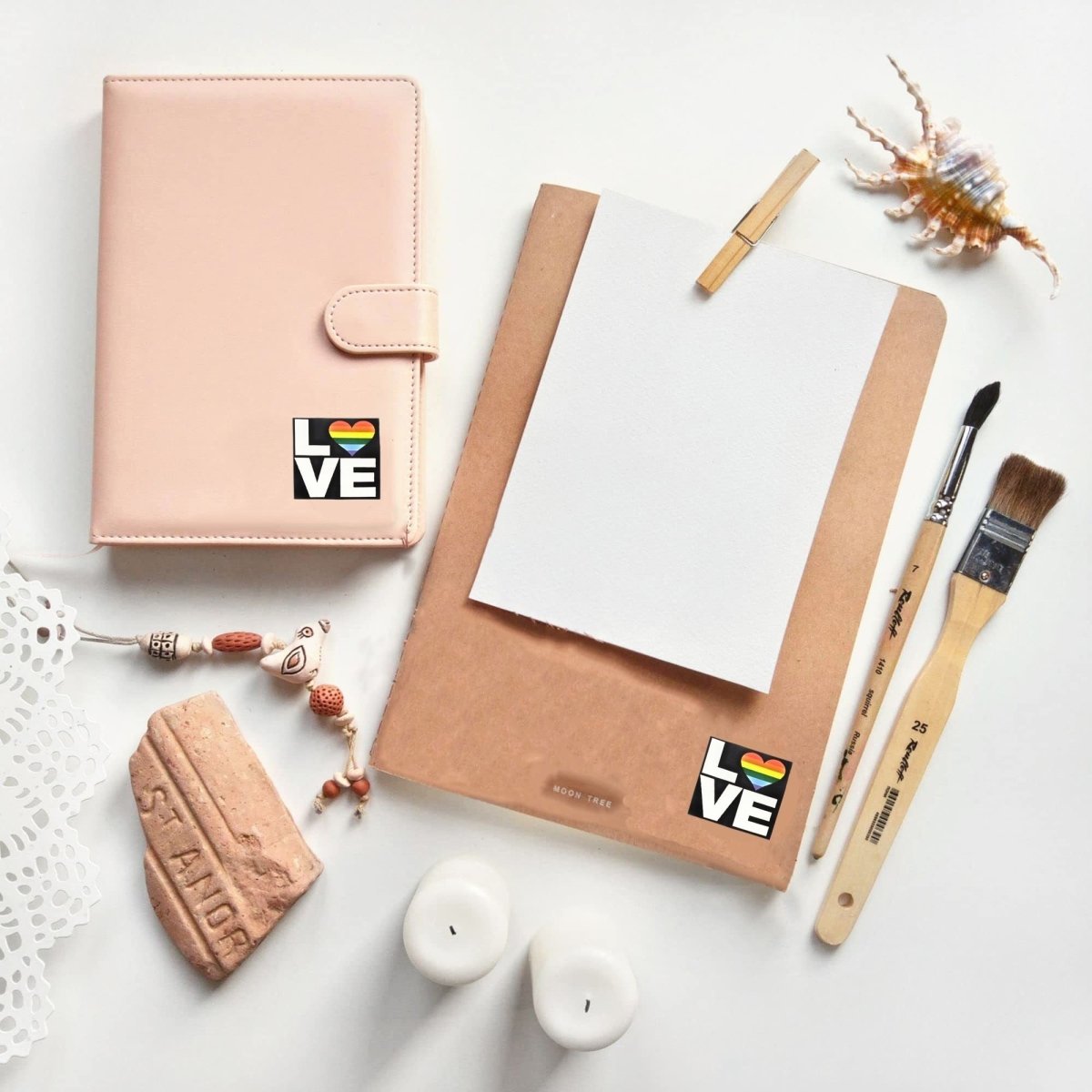 These rainbow heart love stickers are 2 inch square black stickers with the word "Love" in white where the letter "O" is a heart striped with the colors of the rainbow to represent gay pride awareness. Each roll has 250 stickers.