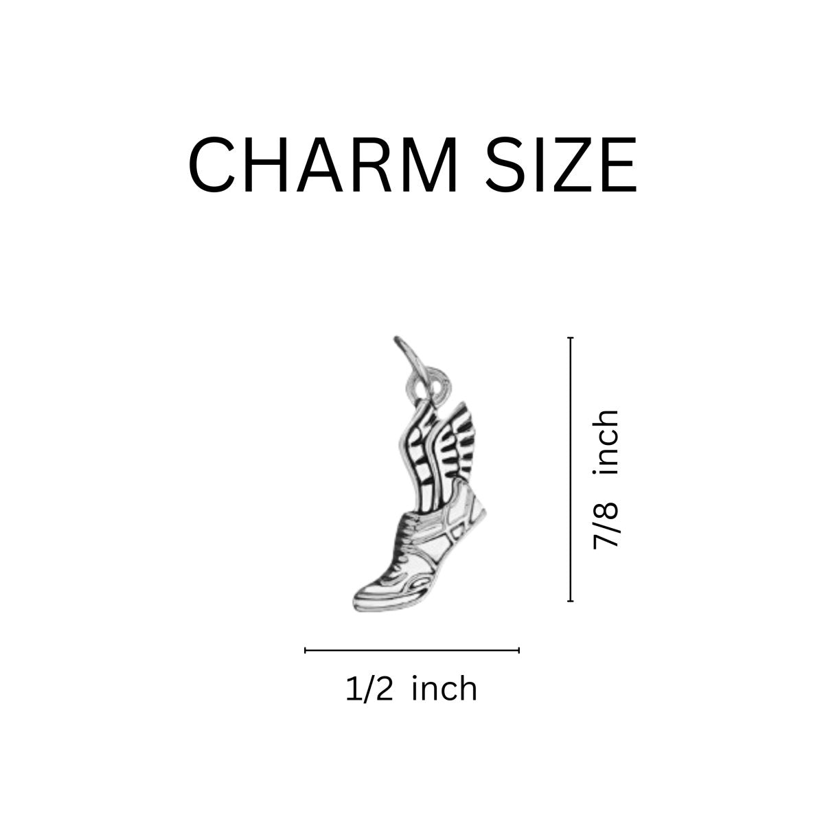 Feel the thrill of the track wherever you go with our Winged Foot Necklaces. Imagine carrying the iconic spirit of speed and triumph around your neck, a symbol that transcends beyond mere athletics. Each necklace features a meticulously crafted silver charm depicting wings emerging from a sneaker€”a timeless representation of athletic excellence and aspiration. Designed with a sleek 17-inch snake chain, the necklace sits comfortably on your collarbone, the sterling silver plating catching the light just right. The charm itself, at 7/8 inch tall by 1/2 inch wide, serves as a powerful yet subtle reminder of your dedication and passion for running. Whether you€™re commemorating a personal milestone, supporting a loved one€™s athletic journey, or simply celebrating your love for the sport, the Winged Foot Necklace is more than just an accessory€”it€™s a testament to your relentless pursuit of greatness. Packaged in a chic bag, it€™s perfect for gifting or treating yourself to a piece of inspiration you can wear every day. Elevate your daily adventures and showcase your love for track and field with this elegant, meaningful piece.